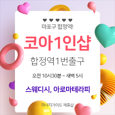 서울 마포 마포 합정 코아1인샵 수준높은 스웨디시관리, 철저한방역과 아늑한공간 첨부파일 10 ~ 18 03-21