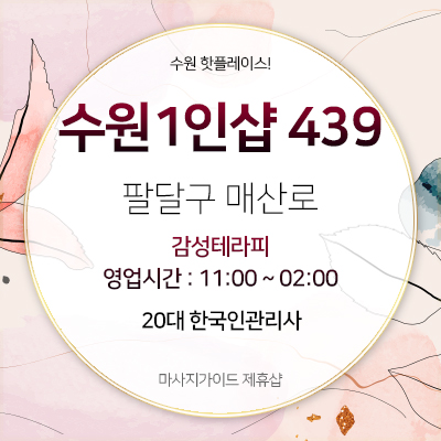 수원건마 > 수원 팔달구 439 1인샵 감성테라피, 20대 한국인관리사 > 수원건마, 용인건마, 오산건마 1인샵 정보 | 필링가이드