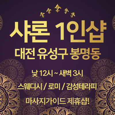 대전건마 > 대전 봉명동 샤론1인샵 전원 20대 업계 최고마인드! 스웨디시&로미로미&감성테라피 전문샵 > 대전건마, 천안건마, 청주건마 1인샵 정보 | 필링가이드